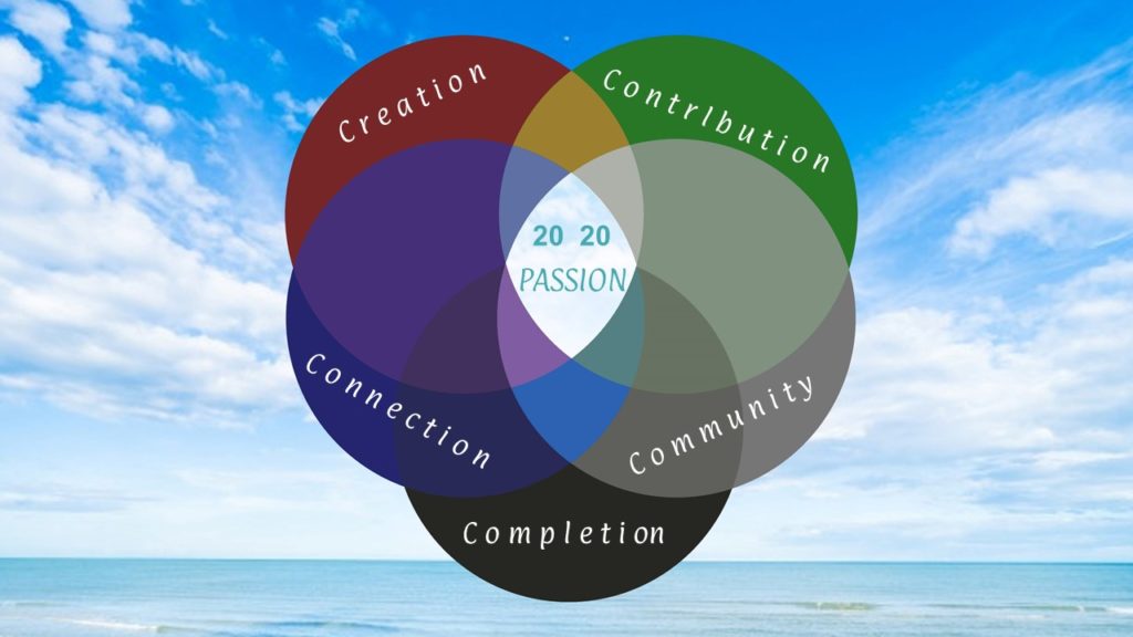 This website provides writings, graphics, and links to articles or videos to help in building a framework or structure for discovering purpose and applying focus to your activities. The menu system and categories will help find posted relevant articles. Below is an introduction to the six topical areas that will be covered again and again for many additional insights for living a more passionate and focused life. These areas can be studied individually, however, the multiplying power is at the center where they all overlap and meld into 2020 Passion.