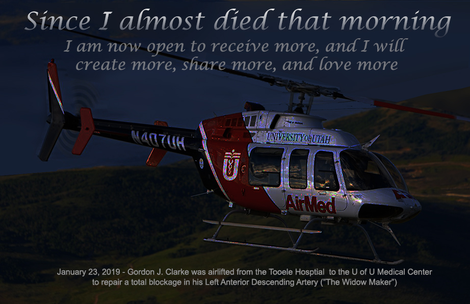 About 4:00am, January 23, 2019 – I was airlifted from the Tooele Hospital to the U of U Medical Center to repair a total blockage in his Left Anterior Descending Artery (LAD Artery, ”The Widow Maker”)